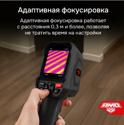 Технический тепловизор AMO T833 позволяет контролировать температуру в центральной точке экрана, в месте, на которое указывает лазерный маркер, или в выбранной зоне. Для повышения точности предусмотрена возможность коррекции показаний с учетом коэффициента отражения цели и дистанции до нее. Поддерживается функция настраиваемой звуковой сигнализации и автоматических маркеров для температурных максимума и минимума. Встроенный фонарик обеспечивает подсветку рабочей зоны при работах в темноте.