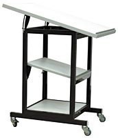 Стол подкатной 50х72х75 см. Столешница в ESD исполнении размером 72,3х50 см из антистатического меламинированного ДСП толщиной 25 мм. Цвет алюминиевого каркаса - коричневый (RAL-8017), цвет ДСП - белый. Четыре колеса, два из них блокируемые. Три рабочие поверхности, в одной предусмотрена возможность регулировки угла наклона (до 15°).